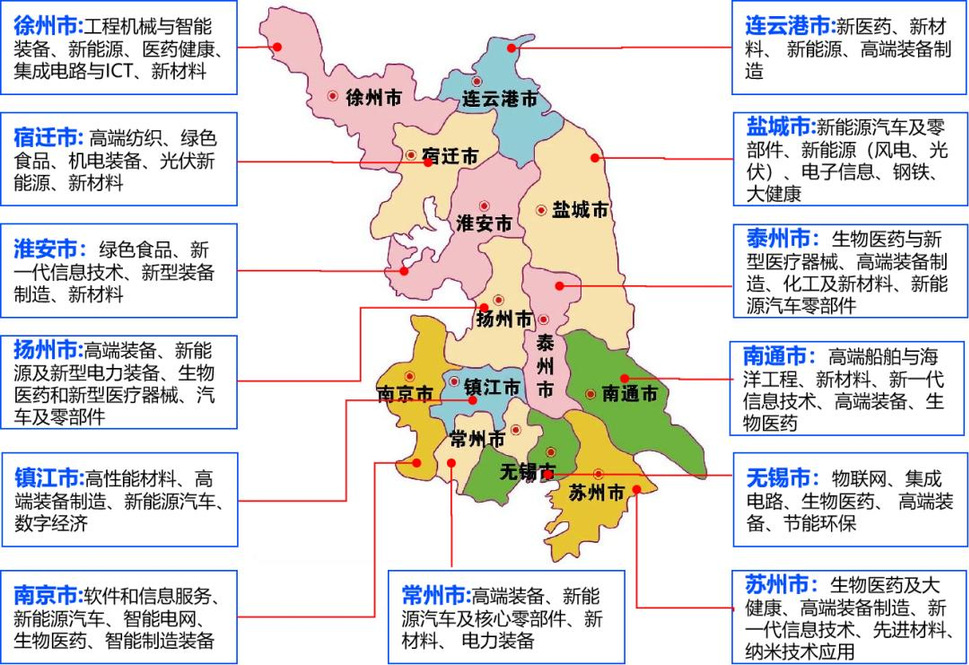苏南地区(南京、苏州、无锡等)以创新驱动为核心,聚焦生物医药、新一代信息技术等前沿产业,增强国际竞争力;
